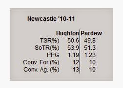2011-12 was Pardew's golden year & secured him an unprecedented 8-year contract. Whilst he received the plaudits for an excellent 5th place finish, it was a strange year in which he presided over the worst shots totals of his tenure both for and against but found the only good save% he's had & his team dominated on conversion rates: